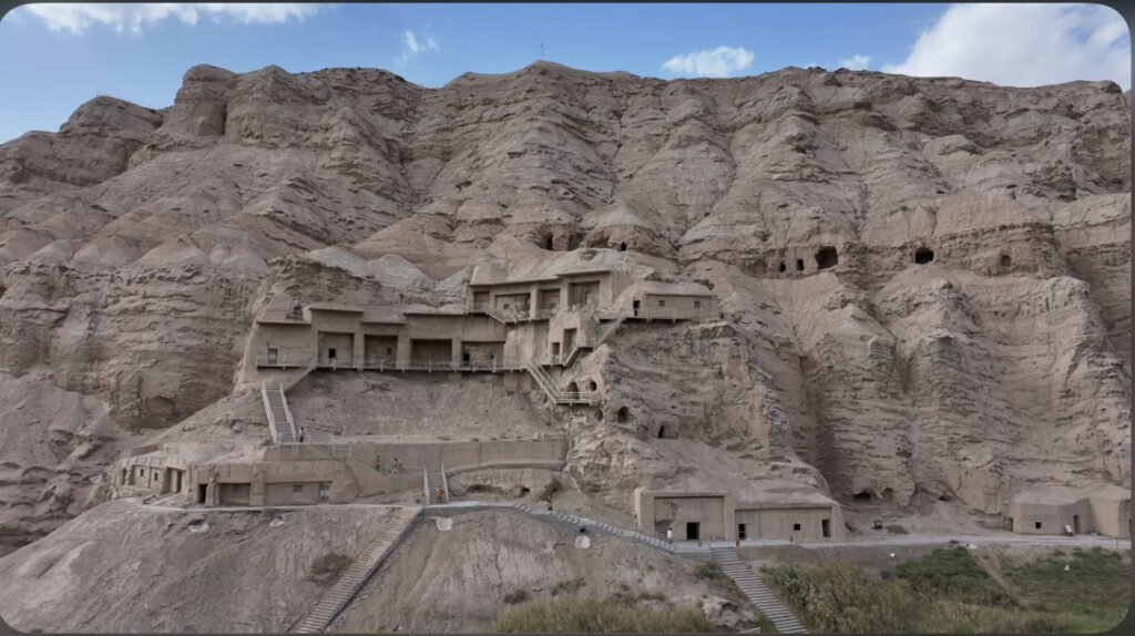 Les grottes de Kizil constituent le plus ancien complexe de grottes artificielles et le grand ensemble rupestre situé le plus à l’ouest du pays. Creusées à partir du IIIe siècle, elles connurent leur apogée entre les Ve et VIIIe siècles avant d’être progressivement abandonnées aux VIIIe-IXe siècles. Ces 349 grottes (dont 236 sont officiellement répertoriées) sont réparties en quatre zones sur une falaise orientée est-ouest. Si la majorité des statues qu’elles abritaient ont été détruites, 81 grottes conservent toujours de magnifiques fresques murales qui représentent une superficie totale d’environ 4 000 mètres carrés. Quelques statues polychromes et les vestiges de structures architecturales devant certaines entrées ont également résisté à l’épreuve du temps.