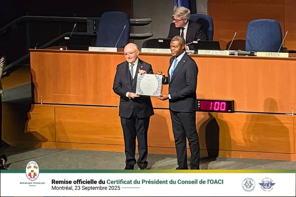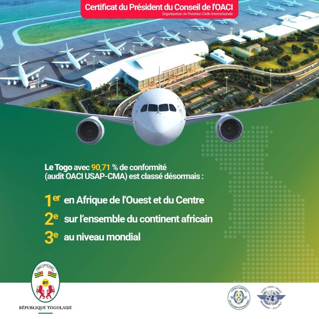 Pour la première fois de son histoire, le Togo a reçu un certificat de reconnaissance du Conseil de l’Organisation de l’Aviation Civile Internationale ( OACI).