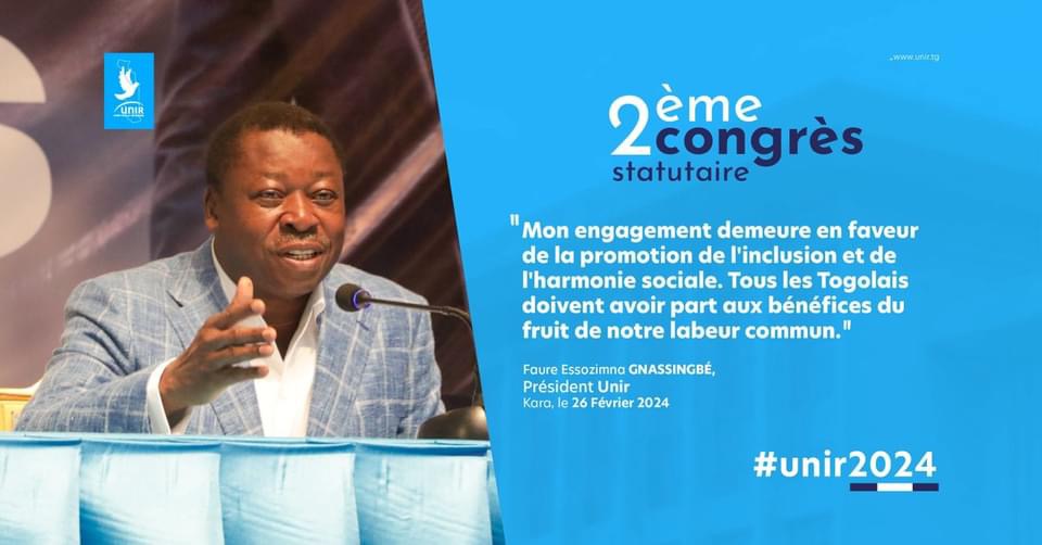Ce lundi 26 février 2024, dans une ambiance de ferveur populaire, s’est tenu le 2ème Congrès Statutaire du parti UNIR. Lors de l’ouverture, le Président de la République, également président du parti, un taciturne de nature mais très exceptionnel orateur politique, a délivré un discours inspirant, imprégné de messages d’unité et de solidarité.