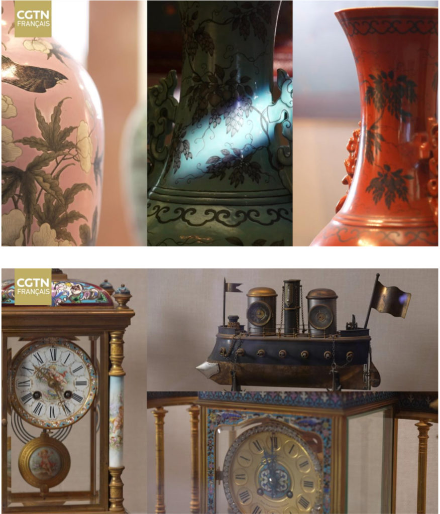 Dans le Musée du Palais d’Été, nous avons exploré quelques-unes des collections les plus emblématiques. Parmi celles-ci, des porcelaines de la fin de la dynastie Qing, aux motifs divers et aux couleurs éclatantes, illustrent l’excellence de l’artisanat de l’époque. Le musée abrite également des objets étrangers, comme des horloges fabriquées en France, en forme de navires ou de locomotives, qui témoignent des avancées technologiques du XIXe siècle.