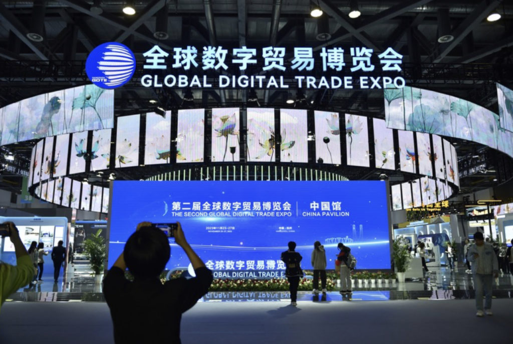 Photo: Pavillon de la Chine à la 2e Exposition mondiale du commerce numérique à Hangzhou, capitale de la province chinoise du Zhejiang (est), le 23 novembre 2023. (Xinhua/Liu Lingyi)