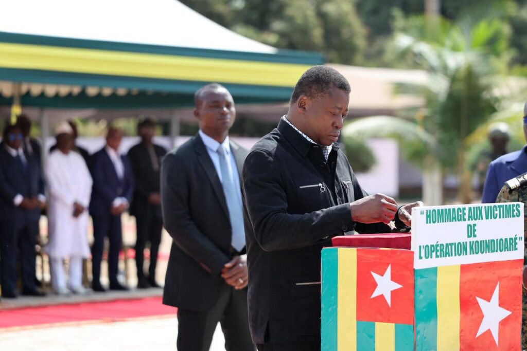 Le Président du Conseil, Faure Essozimna GNASSINGBE a présidé, le samedi passé, au camp militaire Général Améyi de Kara, une cérémonie d’hommage aux soldats togolais morts en 2025 dans le cadre de l’opération Koundjoaré.